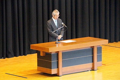 続いて沖生徒部長は、「今年も宜しくお願いします。時間に余裕を持つことや、服装を整えることを今学期も忘れないでください。ノーベル化学賞を受賞した北川進教授は、『0を1にするパイオニアでありたい』と述べていました。0を1にすることで、さまざまな世界ははじまります。既存の1を2にすることも大切ですが、土佐の卒業生には、いつか高知に帰ってきて0を1にしてくれることを期待しています。そんな大きなことではなくても、新しい年において皆さんが0を1にしようと何かに挑戦することを期待します。そして、高3生全員の志望校合格を願っています」と話しました。