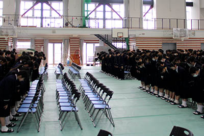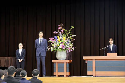 4月9日(木)、対面式と1学期始業式が行われました。対面式とは、中学・高校それぞれの新1年生と在校生が初めて顔を合わせ互いに挨拶を交わす式です。 中学新入生代表の畠中尚輝さんは、「伝統ある土佐中学校に入学したことへの喜びと責任を感じています。先の見えない時代だからこそ、一日一日を大切にして文武両道の努力をしたいです。学ぶ力と挑戦する力を磨き、土佐中生として成長していきます。先輩方・先生方、未熟な私たちにご指導をよろしくお願いします」と挨拶しました。 在校生代表の中3杉本悠雅さんは「勉強にくわえて、部活動や行事など学校生活の様々な場面において全力で取り組み、何事も楽しんでください。土佐にはクラスマッチや運動会など、一致団結して挑戦することのできる行事があります。一人では為し得ないことを達成できたときの、言葉では言い表せないほどの一体感と本物の感動をぜひ味わってほしいです」と歓迎のエールを送りました。 続いて始業式が行われ、五百蔵校長は「いよいよ新学期のスタートです。皆さんの成長を一生懸命考え、支えていきます。中学生に望むことは基礎学力と基礎体力をつけることです。規則正しい生活をおくり、コツコツと努力する習慣を身につけてください。そのうえで、自らのアイデンティティーの確立につながる好奇心を大切にしましょう。疑問を抱いたことや興味を持ったことについて、ぜひ考えを深めたり調べたりしてください」と述べました。あわせて今年度着任した3名の先生方の紹介もありました。 その後、沖生徒部長・山田進路部長の挨拶へと続きました。温かくも身の引き締まる内容に、生徒達は新学期への決意を新たにしました。 中学校に続いて、高校の対面式と始業式も行われました。新入生代表の橋本風凜さん、在校生代表の高3井上葵生さんがそれぞれ挨拶をしました。 中1生を除き、10日から通常授業が始まります。 |