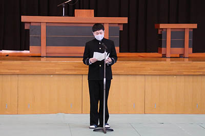 | 4月9日(土)、2022年度1学期の対面式・始業式が行われました。 対面式とは、中学・高校それぞれの新1年生と在校生が初めて顔を合わせ互いに挨拶を交わす式です。中学新入生代表の山内さんは「日常に感謝し、社会に貢献できる人になれるよう自発的・意欲的に学びたい。しかし、入学したてでわからないことも多く、たくさん教えてほしい」と挨拶しました。在校生代表の森田さんは「自分の中1の頃を思い出し、期待と不安がよくわかる。楽しいことも辛いこともみんなで乗り越えていこう」と、中1生に寄り添うように応えました。同じく、高校対面式では新入生代表の嵐さんが「高校生として責任ある行動を心掛けたい。新たな気持ちで頑張るので、未熟な私たちに指導をお願いしたい」と述べました。在校生代表の清岡さんは「高校生活は今までより大きな責任を担うが、心配しないでいつでも私たちを頼ってほしい。みんなで一緒に土佐をさらによい学校にしよう」と応え、新しい仲間を頼もしく歓迎しました。 続いて始業式が行われ、小村校長は「一人一人が自分のできる精一杯やる、これが学校のレベルをあげるということ。それぞれが昨日の自分より成長していこうという気持ちで学校生活に臨んでほしい」と述べました。あわせて新任紹介もあり、今年度着任された山本先生(数学)、築田先生(理科)から挨拶がありました。その後、田村生徒部長・藤岡進路部長の挨拶へと続きました。温かくも身の引き締まる内容に、生徒達は新学年での決意を新たにした様子です。 |