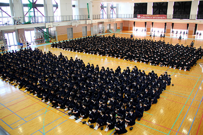 山田進路部長は、「9日後に共通テストが迫りました。おめでとうという気分でもないかもしれないので、読んだ本の話をします。毛内拡の『読書する脳』・渡邉雅子の『共感の論理』という本を読みましたが、脳の働き方は人によってかなり違うのだということを痛感しました。多様性という言葉を毎日使いながら生活していますが、脳の使い方がこれだけ違うとなれば多様性とは一体、と思ったことでした。2学期の終業式にお願いした勉強への取り組みは実践してくれたでしょうか。3学期は、1年の総まとめと次年度につながる期間です。でも、自分が自分のペースで勉強するということが見えづらくなる期間でもあります。自由な時間ではありますが、きちんと自分を定めて勉強してほしいと強く願います」と述べました。