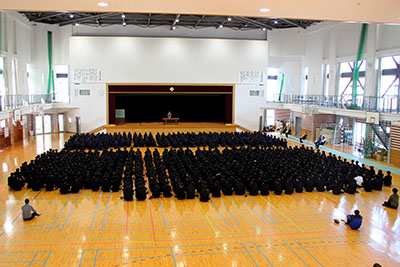 続いて沖生徒部長は、「今年も宜しくお願いします。時間に余裕を持つことや、服装を整えることを今学期も忘れないでください。ノーベル化学賞を受賞した北川進教授は、『0を1にするパイオニアでありたい』と述べていました。0を1にすることで、さまざまな世界ははじまります。既存の1を2にすることも大切ですが、土佐の卒業生には、いつか高知に帰ってきて0を1にしてくれることを期待しています。そんな大きなことではなくても、新しい年において皆さんが0を1にしようと何かに挑戦することを期待します。そして、高3生全員の志望校合格を願っています」と話しました。