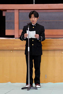 4月9日(木)、対面式と1学期始業式が行われました。対面式とは、中学・高校それぞれの新1年生と在校生が初めて顔を合わせ互いに挨拶を交わす式です。 中学新入生代表の畠中尚輝さんは、「伝統ある土佐中学校に入学したことへの喜びと責任を感じています。先の見えない時代だからこそ、一日一日を大切にして文武両道の努力をしたいです。学ぶ力と挑戦する力を磨き、土佐中生として成長していきます。先輩方・先生方、未熟な私たちにご指導をよろしくお願いします」と挨拶しました。 在校生代表の中3杉本悠雅さんは「勉強にくわえて、部活動や行事など学校生活の様々な場面において全力で取り組み、何事も楽しんでください。土佐にはクラスマッチや運動会など、一致団結して挑戦することのできる行事があります。一人では為し得ないことを達成できたときの、言葉では言い表せないほどの一体感と本物の感動をぜひ味わってほしいです」と歓迎のエールを送りました。 続いて始業式が行われ、五百蔵校長は「いよいよ新学期のスタートです。皆さんの成長を一生懸命考え、支えていきます。中学生に望むことは基礎学力と基礎体力をつけることです。規則正しい生活をおくり、コツコツと努力する習慣を身につけてください。そのうえで、自らのアイデンティティーの確立につながる好奇心を大切にしましょう。疑問を抱いたことや興味を持ったことについて、ぜひ考えを深めたり調べたりしてください」と述べました。あわせて今年度着任した3名の先生方の紹介もありました。 その後、沖生徒部長・山田進路部長の挨拶へと続きました。温かくも身の引き締まる内容に、生徒達は新学期への決意を新たにしました。 中学校に続いて、高校の対面式と始業式も行われました。新入生代表の橋本風凜さん、在校生代表の高3井上葵生さんがそれぞれ挨拶をしました。 中1生を除き、10日から通常授業が始まります。 |