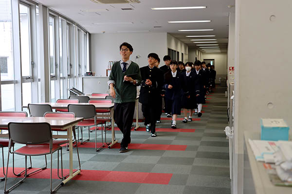 中学1年生のオリエンテーションがありました。教室で日常の学校生活の説明、学校行事の説明を受けた後、職員室や体育館など校内を見て回り、施設の使い方などを教わりました。